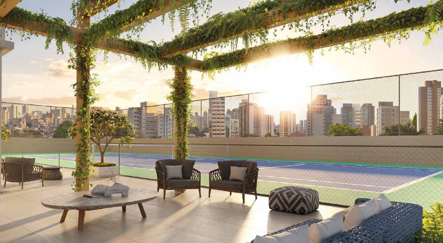 O empreendimento dispõe de uma área de lazer completa, com piscinas coberta e descoberta, solarium, deck molhado, sauna, quadra de tênis oficial, salão de festas, lounge bar, brinquedoteca, pet place e academia indoor, oferecendo entretenimento e bem-estar para toda a família. A entrega das unidades está prevista para setembro de 2026.